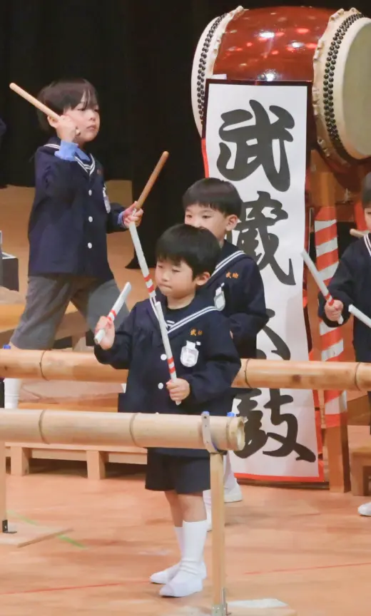 武蔵ヶ丘幼稚園では一人ひとりの個性に応じた指導を行い、集団の中で社会性を身につけ、