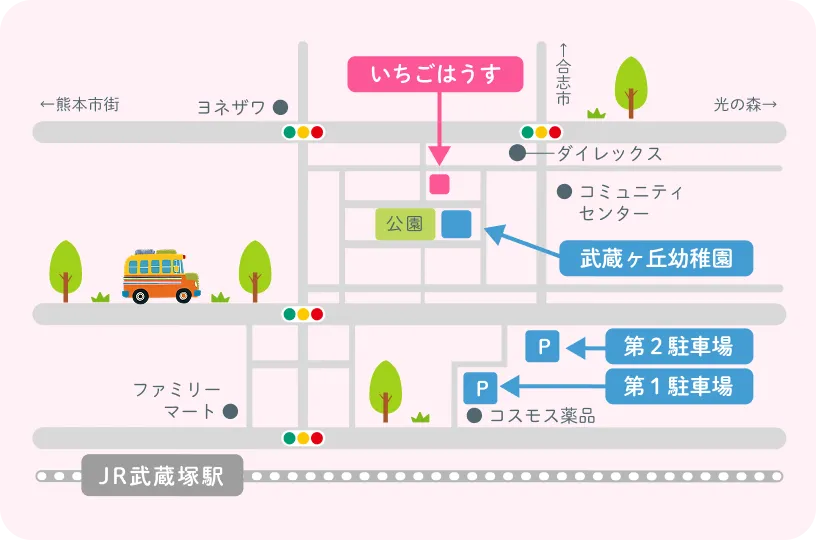 ※お車の方は「いちごはうす駐車場」をご利用ください。
