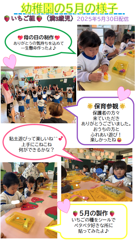 5月はこいのぼりをみんなで作ったり、保育参観や運動会の練習など